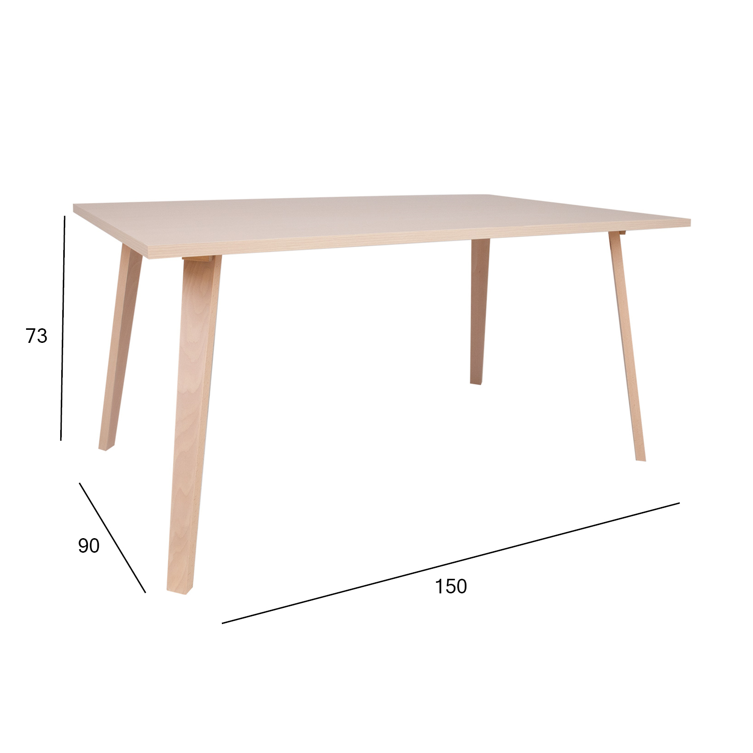 Söögilaud ADORA 150x90xH73cm. Lauaplaat on valmistud kärgplaadist ja kaetud naturaalse pöögispooniga. Lauaplaadi paksus 25mm. Jalad ja raam on valmistatud täispöögipuidust. Laud on viimistletud puidu toonis valge lakiga.