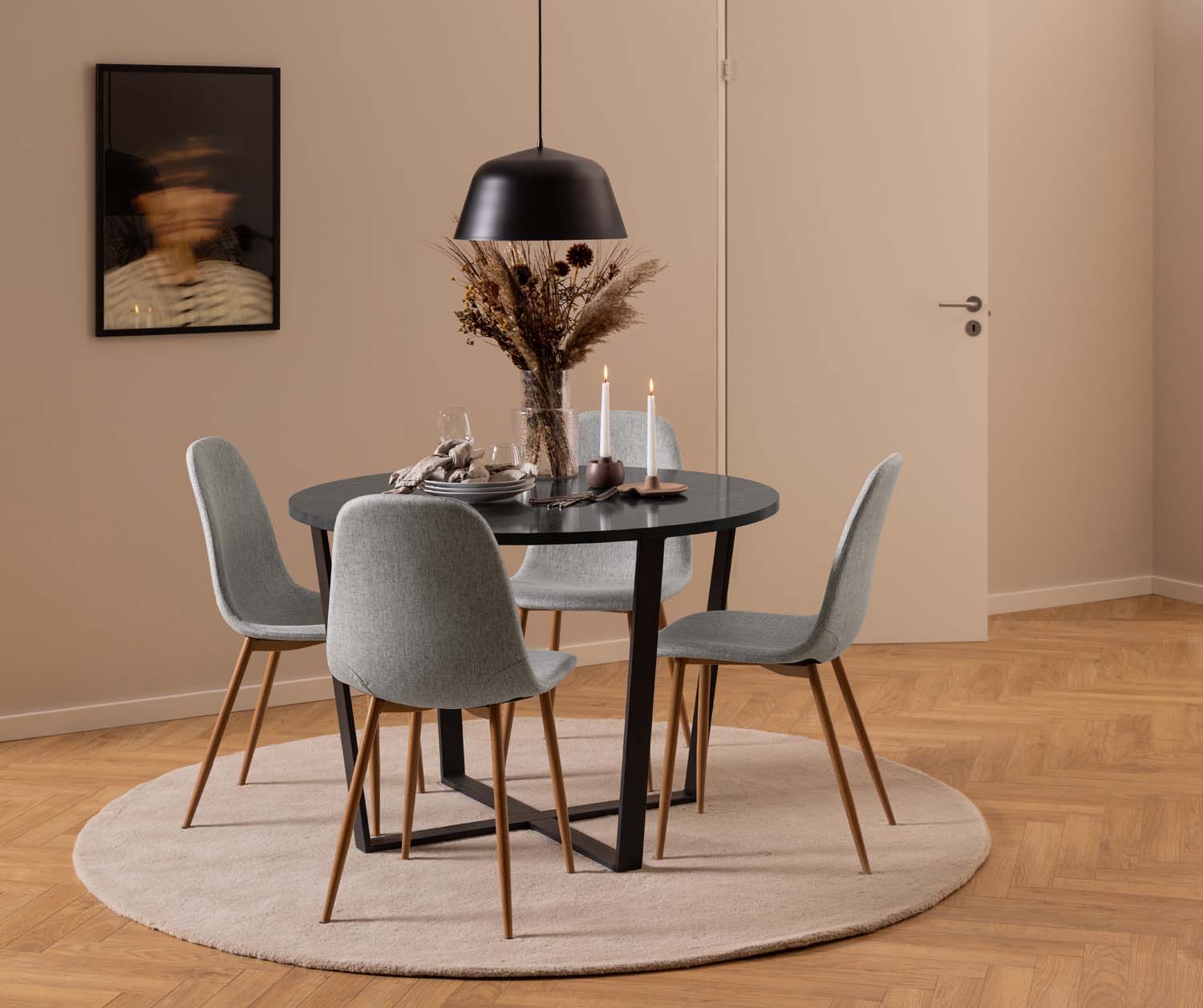 Söögilaud AMBLE D110x75cm, must marmor. Muutke oma söögituba isikupäraseks moodsa marmortrükiga söögilauaga. Laud sobib ideaalselt kööki, võtmata liiga palju ruumi. Metallist ja melamiinist valmistatud söögilaud on nii visuaalselt atraktiivne kui ka vastupidav. Materjalide valik tagab minimaalse hoolduse. Lauaplaat: melamiin musta marmori imitatsiooniga; jalad: matt must metall. HOOLDUS: Üldjuhul vajavad melamiinpinnad vähe hoolt. Kasutage seebiveest kuivaks väänatud lappi ja pühkige pind kuivaks. Vältige küürimispulbri või nailonkäsnade kasutamist, kuna need pleegitavad või kriimustavad laminaati. Ärge hõõruge pinda kõvade esemetega.