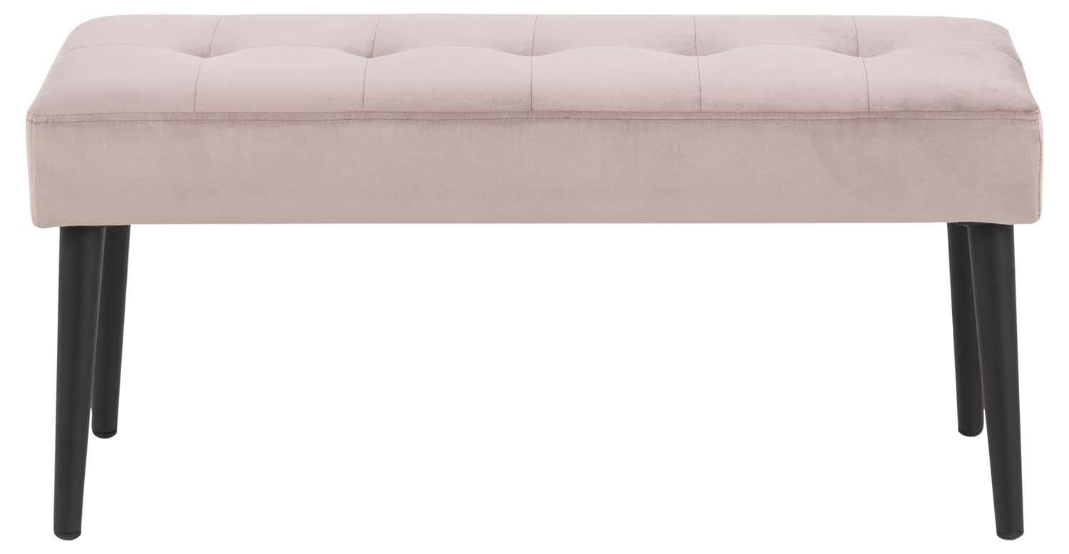Pink GLORY 95x38xH45cm. Elegantne kaasaegse disainiga pink, mis annab teie koridorile, elutoale või magamistoale uue ilme. Detailid lisavad kangale struktuuri ja annavad sellele luksusliku tunde. Iste: sametkangas, värvus: vanaroosa. Jalad: metall, must. Kaalupiirang: 110kg. HOOLDUS: Hooldus piirdub tolmuimejaga ja plekieemaldamisega. Plekkide eemaldamisel tuleb olla ettevaatlik. Katsetage plekieemaldajaid esmalt vähem nähtaval alal ja tegutsege vastavalt tulemusele. Ärge kunagi kasutage lahusteid. Ärge asetage mööblit otsese päikesevalguse kätte. Aluse jaoks kasutage igapäevaseks puhastamiseks seebiveest kuivaks väänatud lappi. Rooste vältimiseks pühkige pind lapiga kuivaks. Ärge hõõruge pinda kõvade esemetega.