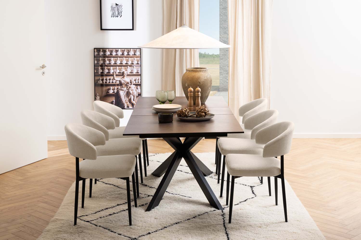 Kaunis tool lisab söögituppa elegantsust. Silmapaistval toolil on ümar kuju, seljatoe ja istme vahel on eristuv ruum. Moodne tool on lisaks ka väga mugav. Mõõdud on 56x55xH77cm. HOOLDUS: Hooldus piirdub tolmuimemise ja plekieemaldusega. Plekkide eemaldamisel tuleb olla ettevaatlik. Katsetage plekieemaldajaid esmalt vähem nähtaval alal. Ärge kunagi kasutage lahusteid. Ärge asetage mööblit otsese päikesevalguse kätte. Alus: Kasutage igapäevaseks puhastamiseks seebiveest kuivaks väänatud lappi. Rooste vältimiseks pühkige pind kuivaks. Ärge hõõruge pinda kõvade esemetega.