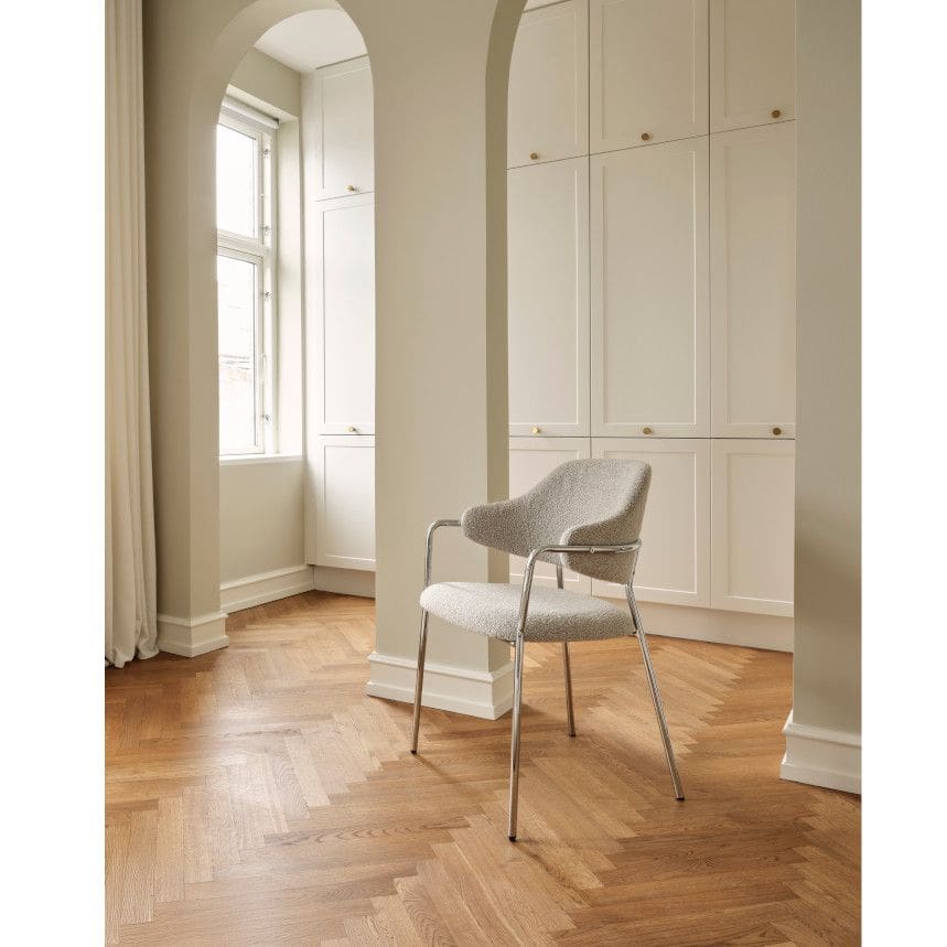Elegantse ja lihtsa joonega tool Grace, mis on kaetud halli kangaga. Sobib hästi erinevatesse interjööridesse, lisades ruumi avarust ja hubasust.