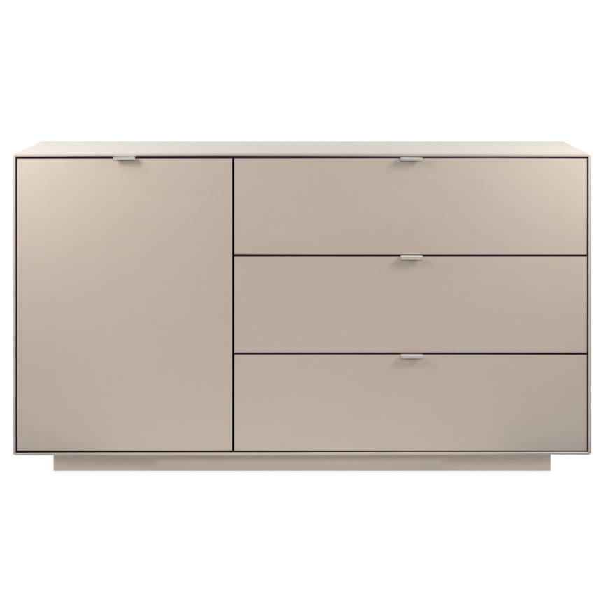 Kogu sarja mööbel on valmistatud mööbliplaadist ning on saadaval erinevates viimistlustes. Aktsendiks mustad käepidemed. Kummutil on viis metallsiinidel liikuvat sahtlit, jalad mustast plastikust.