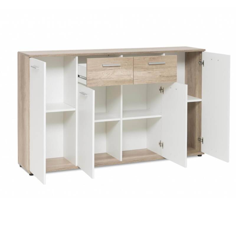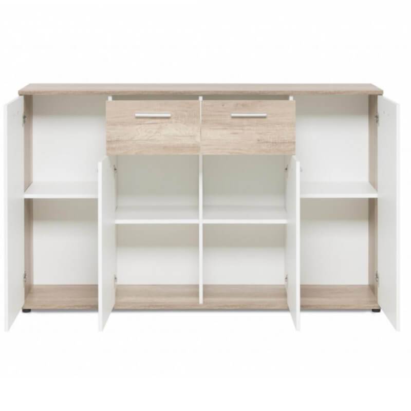 Valmistatud kvaliteetsest ning vastupidavast puitlaastplaadist ning viimistletud metsiku tamme imitatsiooniga ja valge tooniga