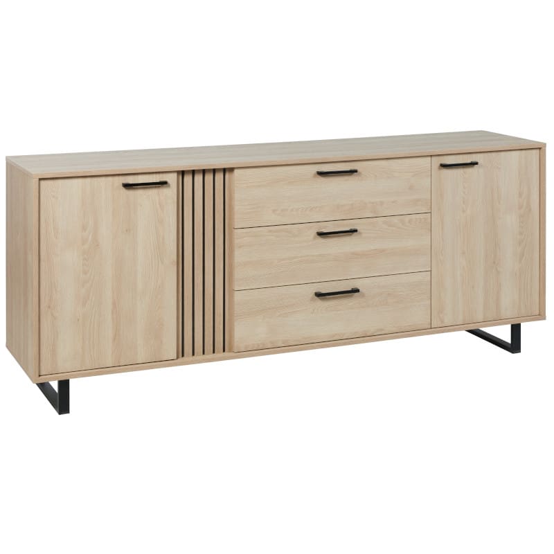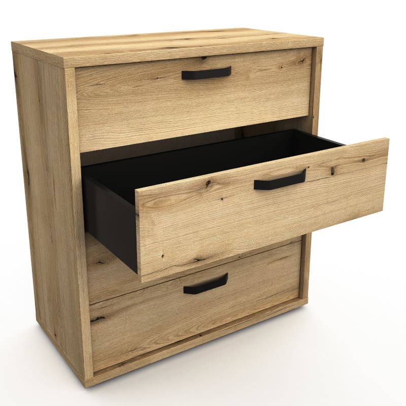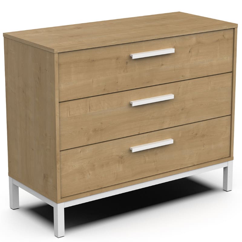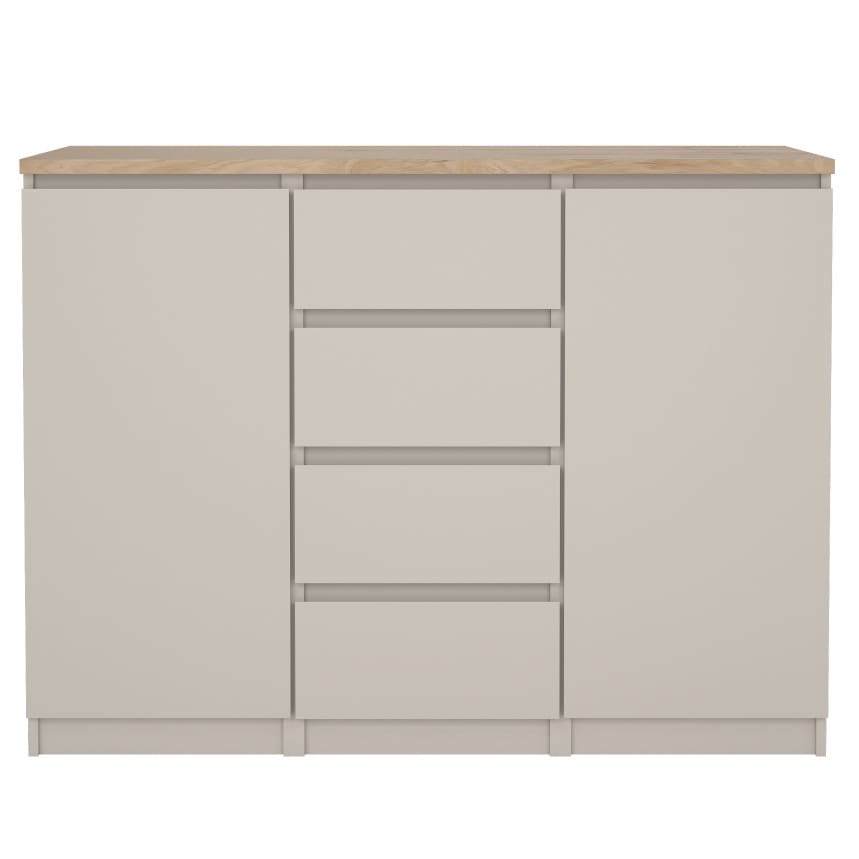 Kogu sarja mööbel on valmistatud mööbliplaadist ning on etna tamme imitatsiooniga. Kummutil on neli metallsiinidel liikuvat sahtlit.