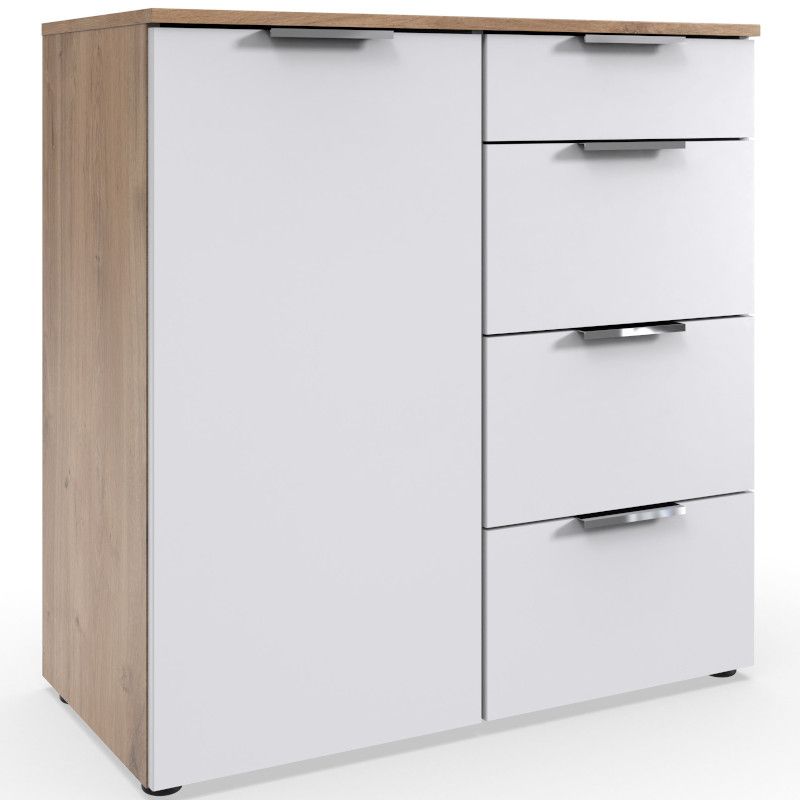 Kogu sarja mööbel on valmistatud mööbliplaadist. Kummutil on neli metallsiinidel liikuvat sahtlit ning ukse taga kaks vaheriiulit. Kapi karkass on tammeplangu imitatsioonis ning esipaneelid valged. Käepidemed kroomitud.