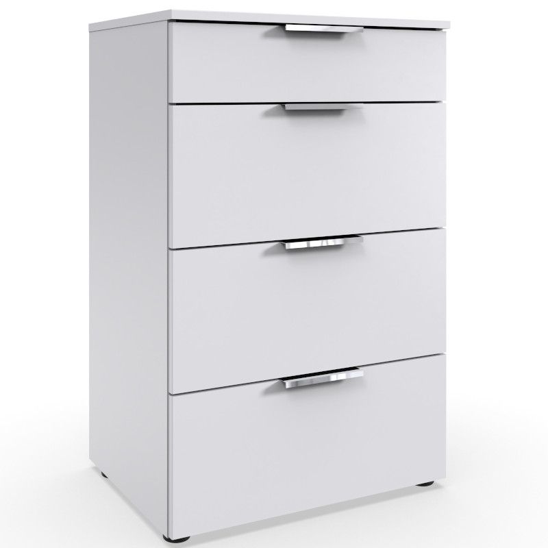 Kogu sarja mööbel on valmistatud mööbliplaadist. Kummutil on neli metallsiinidel liikuvat sahtlit. Kummut on valges toonis. Käepidemed kroomitud.