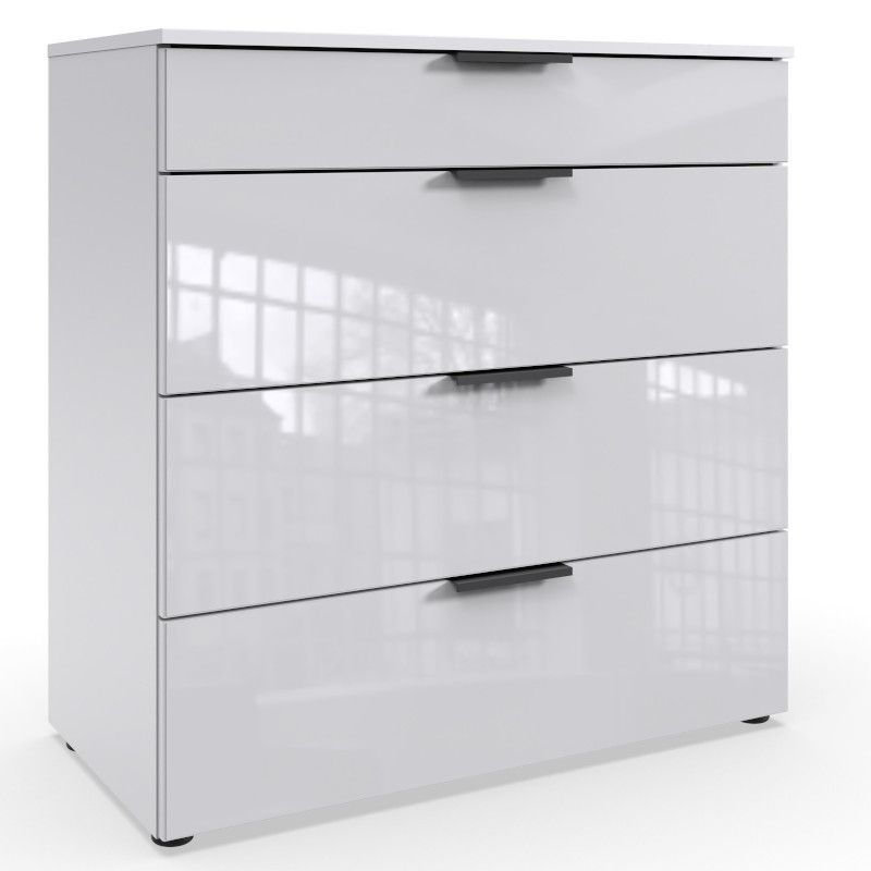 Kogu sarja mööbel on valmistatud mööbliplaadist. Kummutil on neli metallsiinidel liikuvat sahtlit. Kummuti karkass on valge ning sahtlite esipaneelid on kaetud valge klaasiga. Käepidemed mustas toonis.