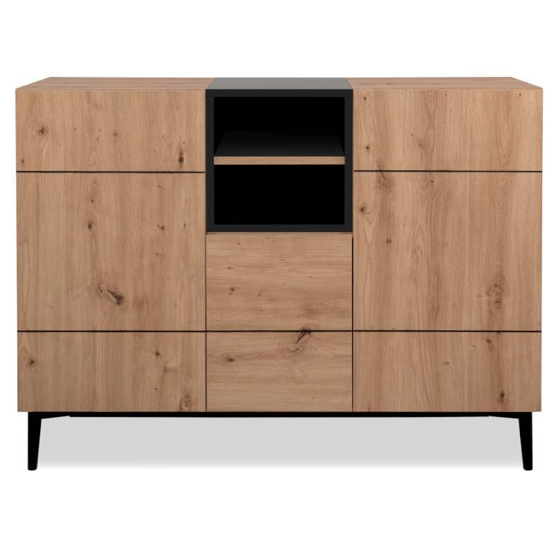 Kogu sarja mööbel on valmistatud mööbliplaadist. Kummutil on kaks metallsiinidel liikuvat sahtlit. Vasaku ukse taga on kaks vaheriiulit ning parema ukse taga üks riiul. Kummuti karkass on valge ning sahtlite esipaneelid on kaetud halli klaasiga. Käepidemed kroomitud.