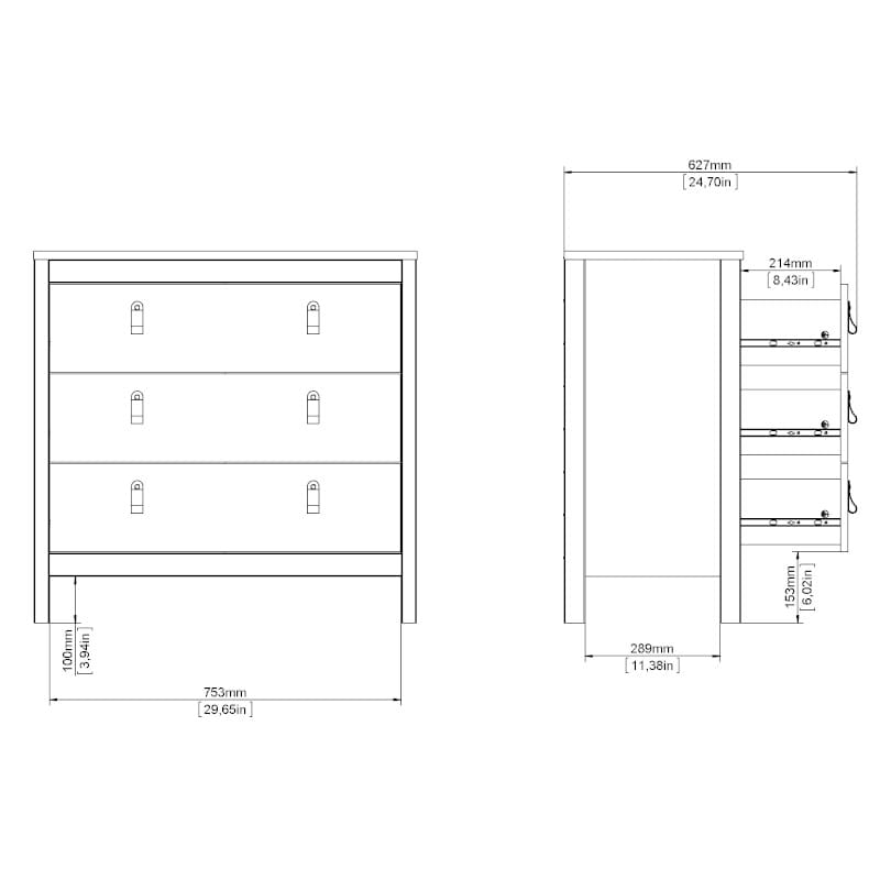 Kogu sarja mööbel on valmistatud mööbliplaadist. Kummutil on kolm metallsiinidel liikuvat sahtlit. Pealmise lauaplaadi maksimaalne kandevõime on 16 kg ja iga sahtli kandevõime on kuni 8 kg.