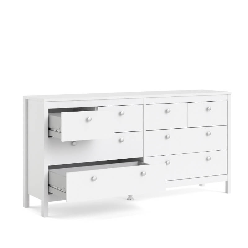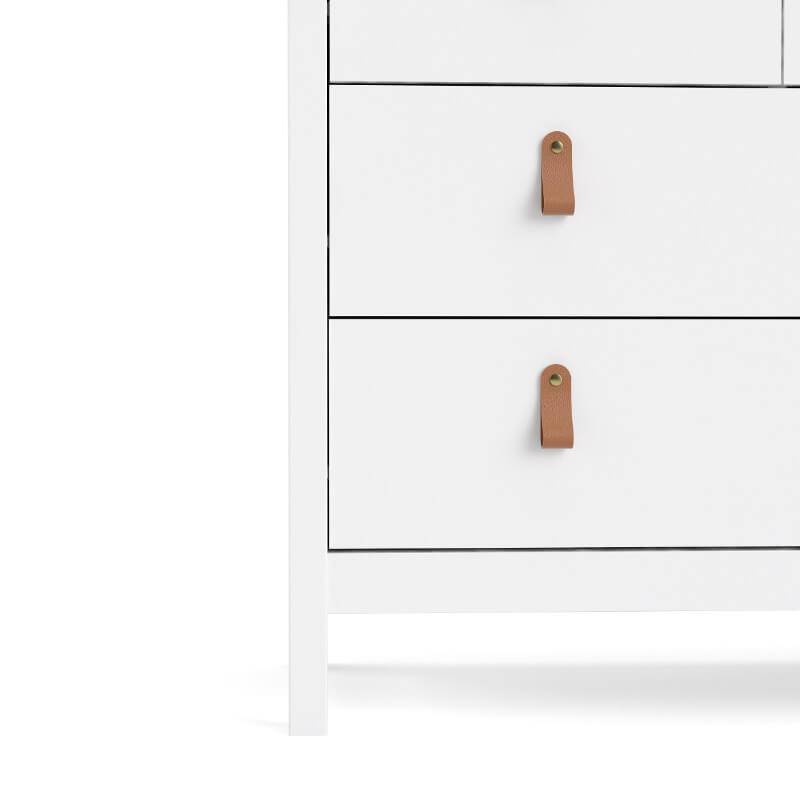 Kummut on valmistatud mööbliplaadist ja on viimistletud valge tooniga. Kummutil on kaheksa metallsiinidel liikuvat sahtlit, millest neli väikest ja neli täislaiuses sahtlit. Kummutil on kaasas mõlemad käepidemete variandid nii hõbedane metallnupp kui nahast aas. Kummuti pealmise lauaplaadi maksimaalne kandevõime on 16 kg. Väikeste sahtlite kandevõime on kuni 4 kg ja suure sahtli kandevõime kuni 8 kg. Kummuti keskel on lisatoestuseks lisajalad, kõrgusega 10 cm.