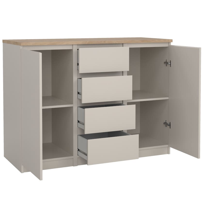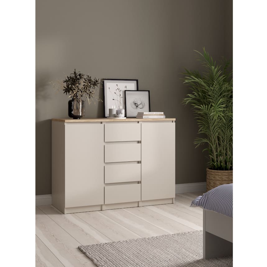 Kogu sarja mööbel on valmistatud mööbliplaadist. Kummutil on kaks ust ja neli sahtlit. Mõlema ukse taga on üks reguleeritava kõrgusega vaheriiul. Sahtlid liiguvad metallsiinidel. Ühe sahtli kandevõime on 8 kg. Ühe vaheriiuli kandevõime on 5 kg. Kummuti pealmise plaadi kandevõime on kuni 50 kg.