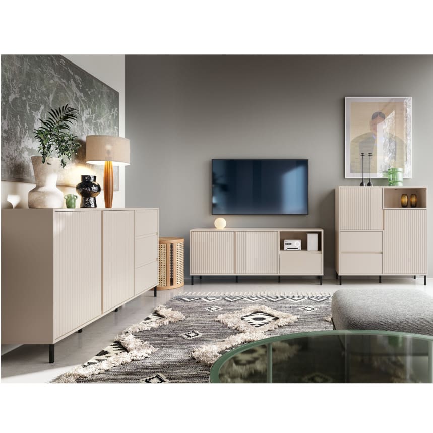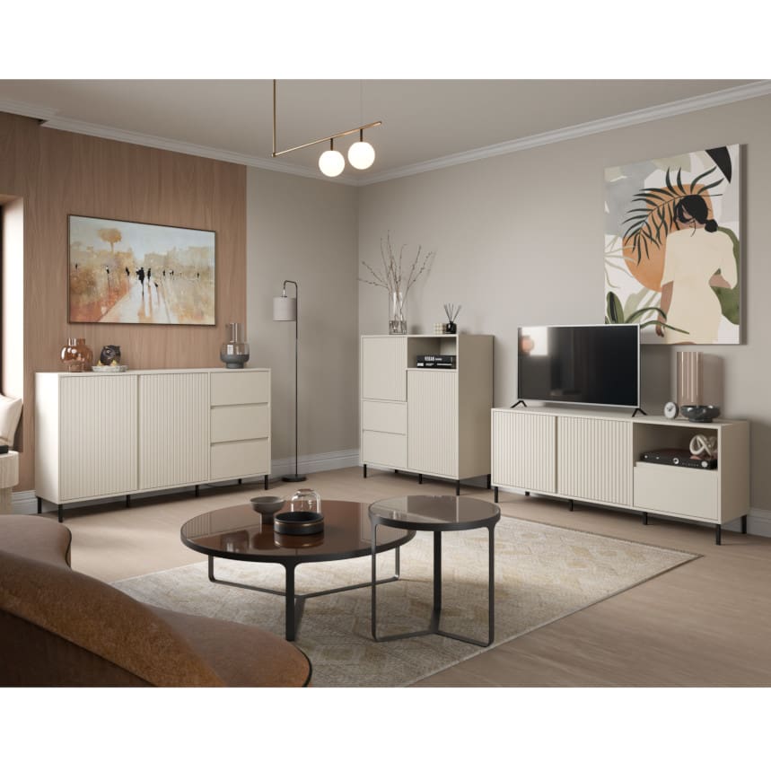 Avenale sari pakub kolme hoolikalt valitud värvilahendust – tagasihoidlikust kuni julgeni. Pilkupüüdvad vertikaalsed sooned lisavad rütmi ja iseloomu, mida täiustavad siledad esipinnad, luues elegantse ja modernse üldmulje. Erineva suuruse ja disainiga kapid võimaldavad mööbli paigutust vabalt oma vajaduste ja elustiili järgi.