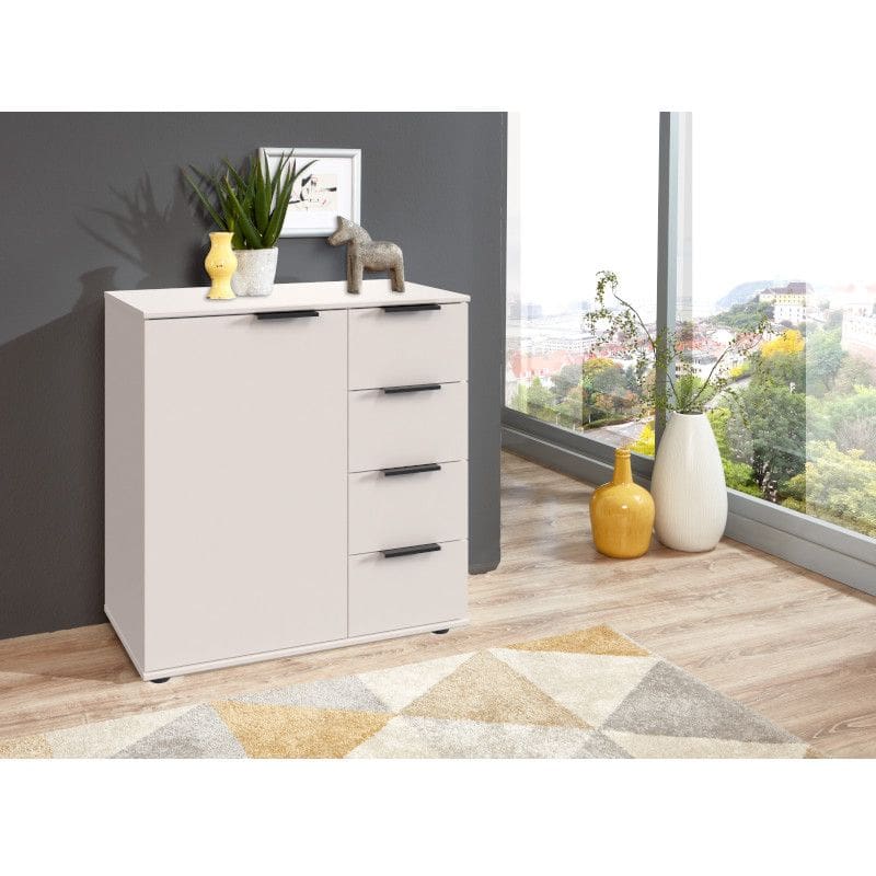 Kogu sarja mööbel on valmistatud mööbliplaadist ning on saadaval erinevates viimistlustes. Aktsendiks mustad käepidemed. Kummutil on neli metallsiinidel liikuvat sahtlit ning üks uks, mille taga vaheriiulid, jalad mustast plastikust.