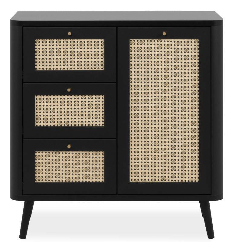 Kogu sarja mööbel on valmistatud mööbliplaadist ning on saadaval erinevates viimistlustes. Aktsendiks mustad käepidemed. Kummutil on keskel neli metallsiinidel liikuvat sahtlit ning mõlemal pool ääres üks uks, mille taga vaheriiulid. Jalad mustast plastikust.
