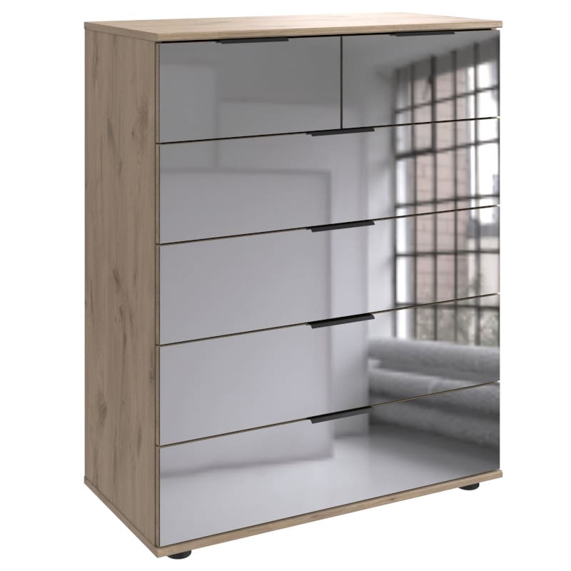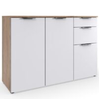 Kogu sarja mööbel on valmistatud kvaliteetses mööbliplaadist on millenium tamme imitatsioonis. Puhvetkummutil on kolm ust ja kaks metallsiinidel liikuvat sahtlit, mis pakuvad piisavalt hoiuruumi ja mugavust. See disain võimaldab sul hoida esemeid organiseeritult ning hõlpsasti ligipääsetavana.