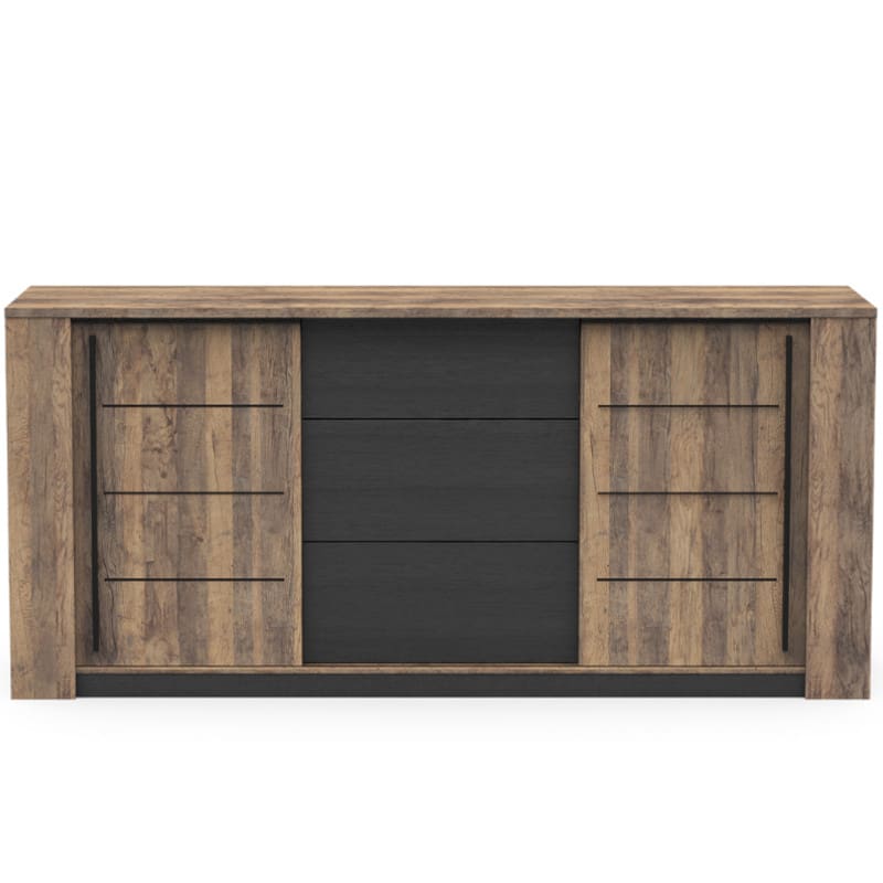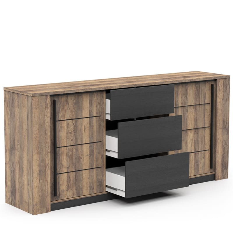 Kogu sarja mööbel on valmistatud mööbliplaadist, mis on osaliselt saloon tamme imitatsiooniga ning osaliselt mustas toonis. Kummutil on keskel kolm sahtlit. Äärtes kaks lükandust, mõlema taga üks vaheriiul.