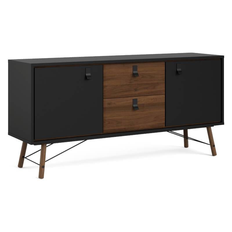 Puhvetkummut on valmistatud kvaliteetsest mööbliplaadist ning kapi karkass on viimistletud matt musta tooniga. Kapil on kaks ust, mõlemad viimistletud musta tooniga. Mõlema ukse taga on üks vaheriiul. Kummutil on kaks sahtlit ning need on viimistletud pähkli imitatsiooniga. Sahtlid liiguva mugavalt metallsiinidel. Käepidemed on valmistatud metallist ning viimistletud halli tooniga.
