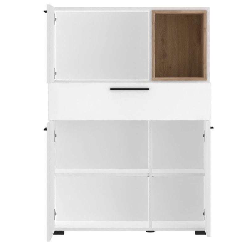Kogu sarja mööbel on valmistatud mööbliplaadist, valges toonis, castello tamme detailidega. Kummut on mahukas ning pakub mõnusalt hoiuruumi. Kahe alumise ukse taga on üks vaheriiul, ülemise ukse taga praktiline hoiuruum. Keskel üks sahtel ning selle kohal avatud osa.