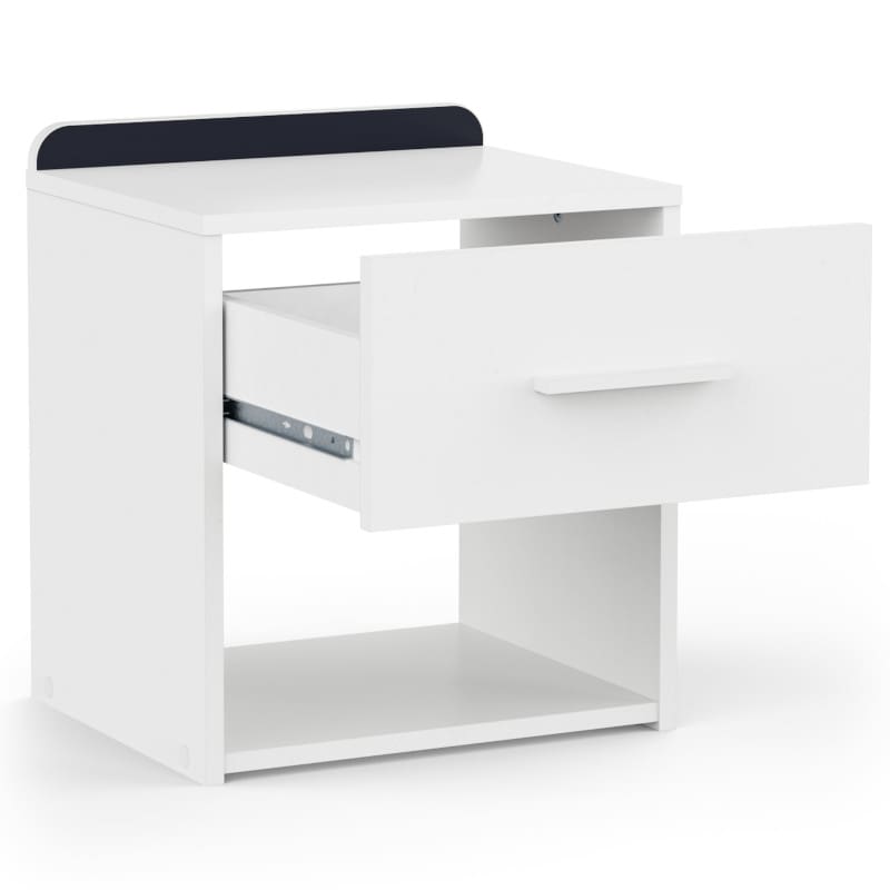 Kogu sarja mööbel on valmistatud mööbliplaadist. Öökapil on üks metallsiinidel liikuv sahtel ning selle all avatud osa.