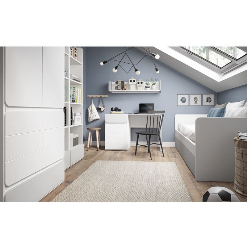 Flexi sari on hoolikalt kavandatud ja pakub kauni disainiga lastetoa lahendust. Selle ümar disain pakub mitmekülgsust ja lisab ruumile mängulisust ja iseloomu. Valge ja helehalli värvikombinatsioon loob rahuliku ja õdusa atmosfääri, mis soodustab keskendumist ja lõõgastumist. Flexi sarjaga loote ruumi, kus laps saab nautida õppimist, mängimist ja puhkamist.