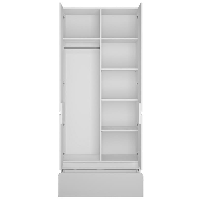 Riidekapi sisemuses on kuus riiuliosa ja riidepuutoru, mis hõlbustavad riiete eraldamist, samas kui mahukas sahtel aitab hoida väiksemaid esemeid.