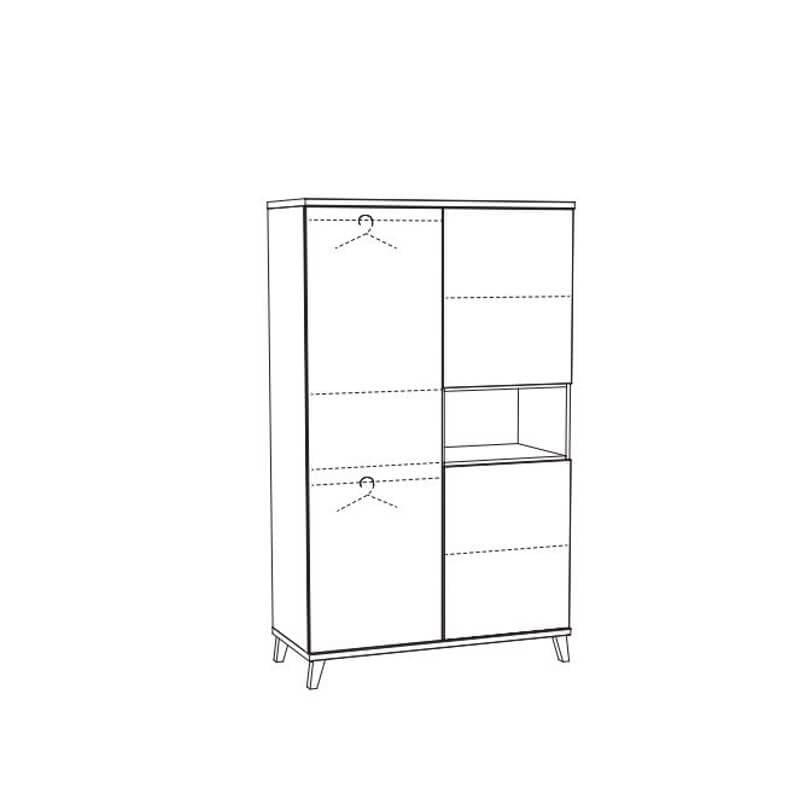 Riidekapp on valmistatud kvaliteetsest mööbliplaadist river tamme puiduimitatsiooniga. Kapi parempoolsete uste taga on riiulid ning kahe ukse vahel üks avatud riiul. Vasakpoolse ukse taga on kaks riipdepuutoru ja kolm riiulit.