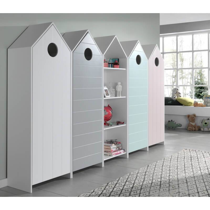 Riidekapp on valmistatud kvaliteetsest valges toonis mööbliplaadist ning uks mündirohelisest. Kapil on kolm vaheriiulit, nende vaheline kõrgus on 38 cm, vaheriiuli sügavus on 35 cm. Riidekapi uksel on ava, mille läbimõõt on 15 cm.