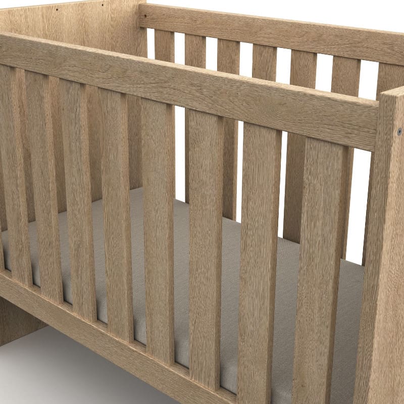 Kogu sarja mööbel on valmistatud melamiinkattega mööbliplaadist, sand tamme imitatsiooniga. Beebidele mõeldud võrevoodi saab hiljem muuta suuremaks lastevoodiks (lastevoodi mõõdud: 97x67x206 cm).