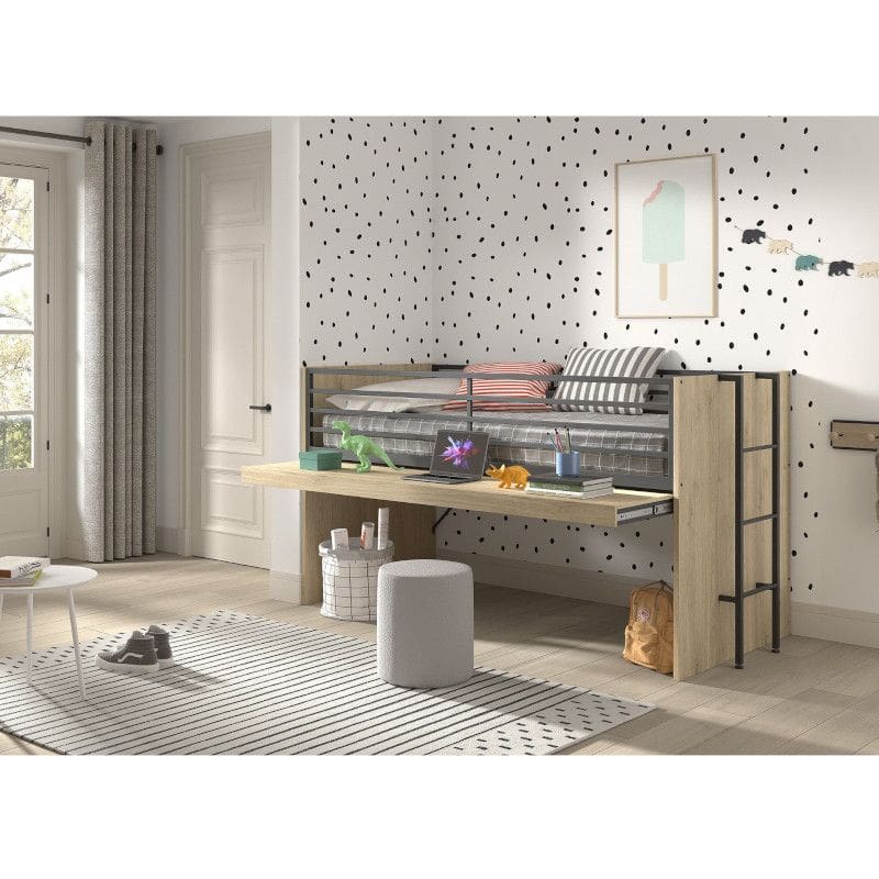 Sam kollektsiooni trendikas voodi ühendab kaasaegse välimuse mustade aktsentidega ning pakub nutikat ja ruumisäästlikku lahendust. See on ideaalne valik neile, kes hindavad funktsionaalsust ja stiili. Voodi disainis on pööratud erilist tähelepanu praktilisusele – väljatõmmatav laud pakub avarat pinda, mis sobib suurepäraselt kodutöödeks või loominguliseks tegevuseks.