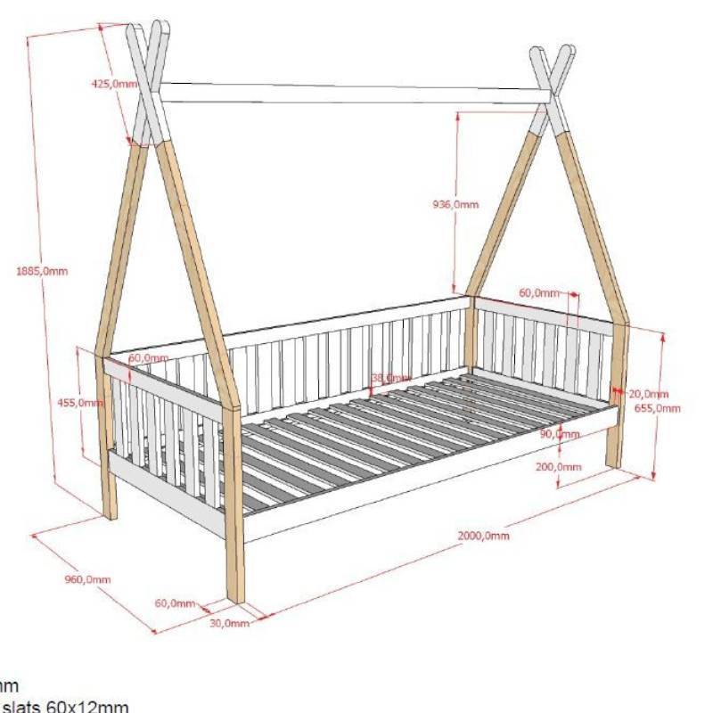 Valge ja naturaalse viimistlusega voodi on valmistatud vastupidavast männipuidust, mis tagab voodi pika eluea. Voodile sobib madrats mõõtudega 90×200 cm (madrats ei kuulu komplekti). Voodipõhi kuulub komplekti. Voodi maksimaalne kandevõime on kuni 75 kg. Voodi alla mahub ka voodialune kast, see tuleb soetada eraldi.