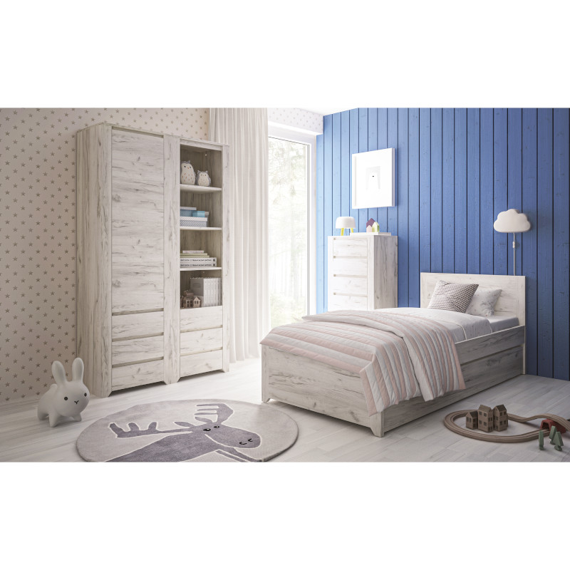 Kogu sarja mööbel on valmistatud lamineeritud puitlaastplaadist, mis on vastupidav mehaanilistele kahjustustele. Voodi on varustatud funktsionaalse rullikutel väljatõmmatava sahtliga, mis võib hästi toimida täiendava magamiskohana. See sobib madratsile mõõtmetega: 80×190 cm ja kõrgusega kuni 15 cm.