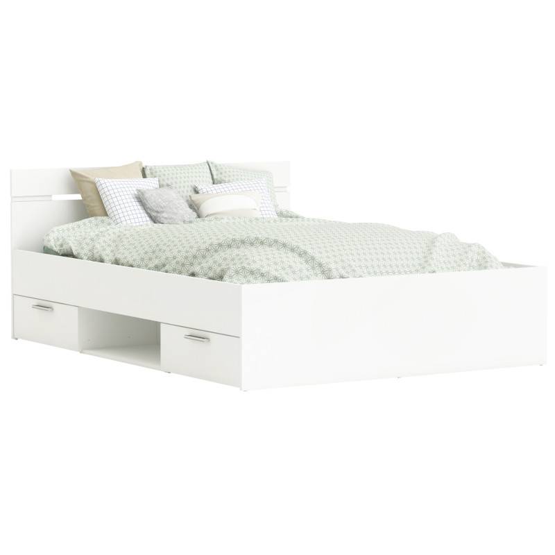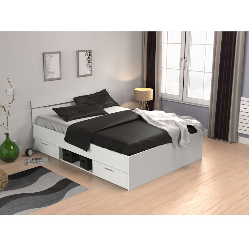 Voodi on valmistatud puitlaastplaadist ning viimistletud valge tooniga. Sahtleid saab paigaldada voodi paremale või vasakule küljele. Sahtli mõõdud on 56 x34 x11 cm ning avatud osa seal vahel on mõõdus 69 x 26 x36 cm. Käepidemed on hallid. Voodile sobib raamiga voodipõhi.