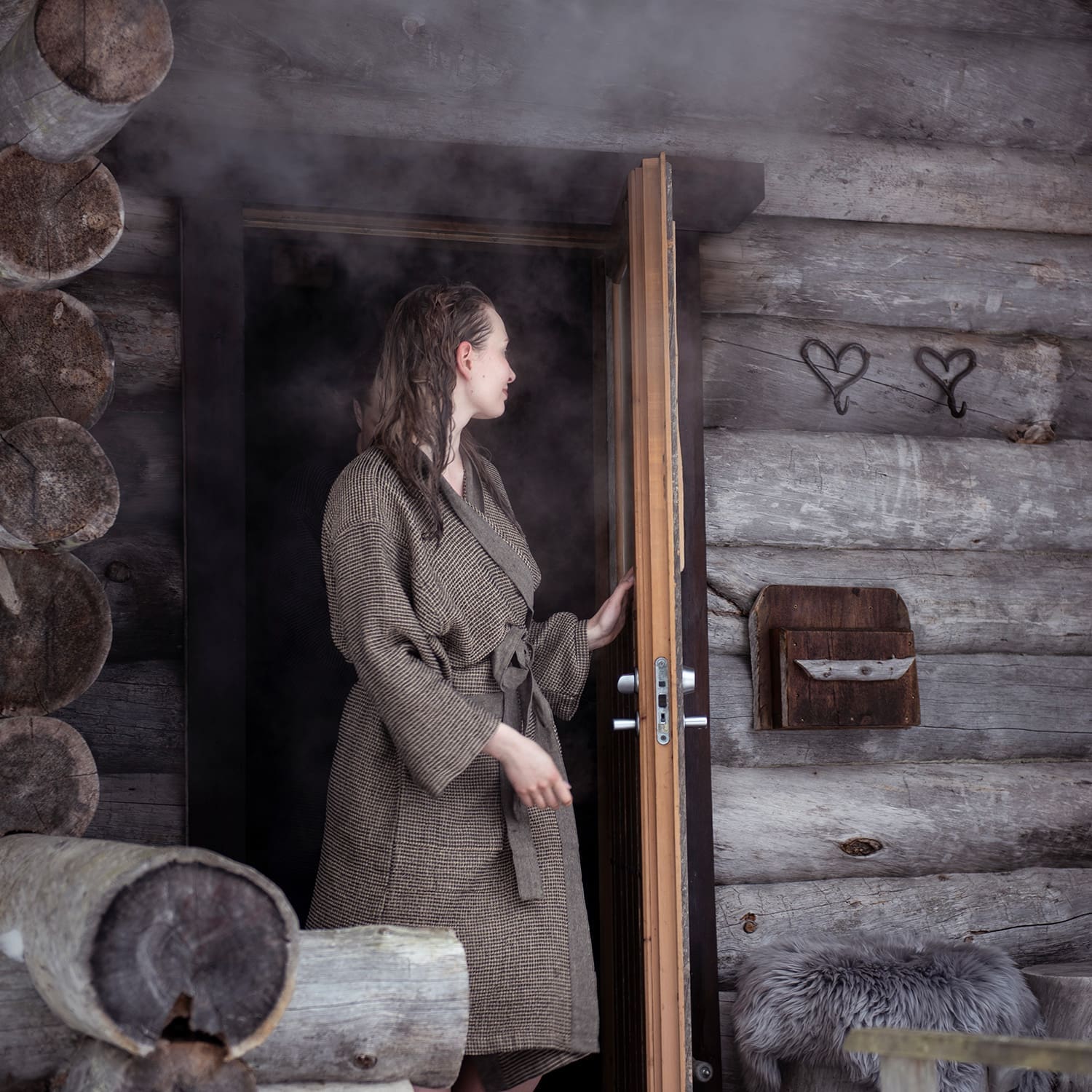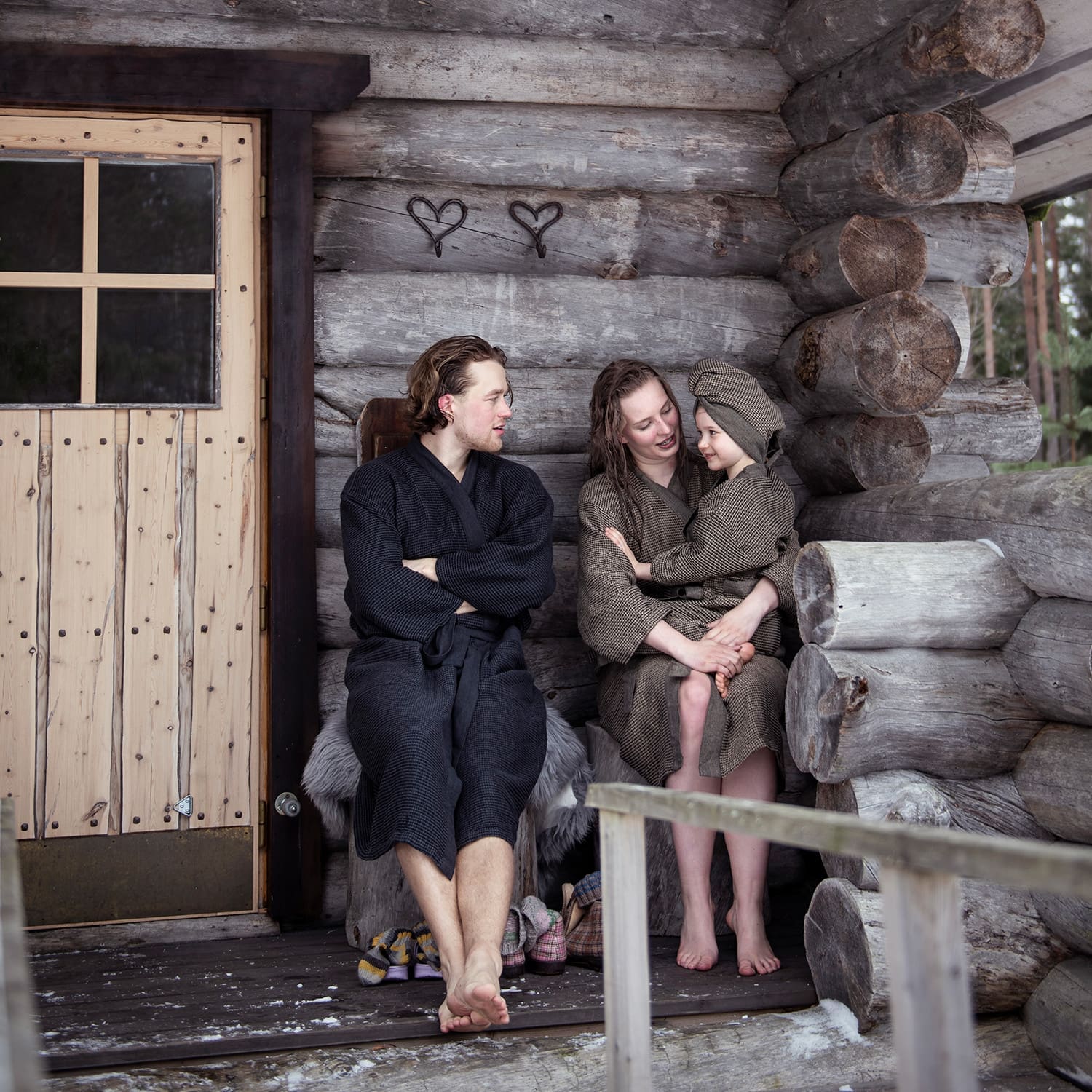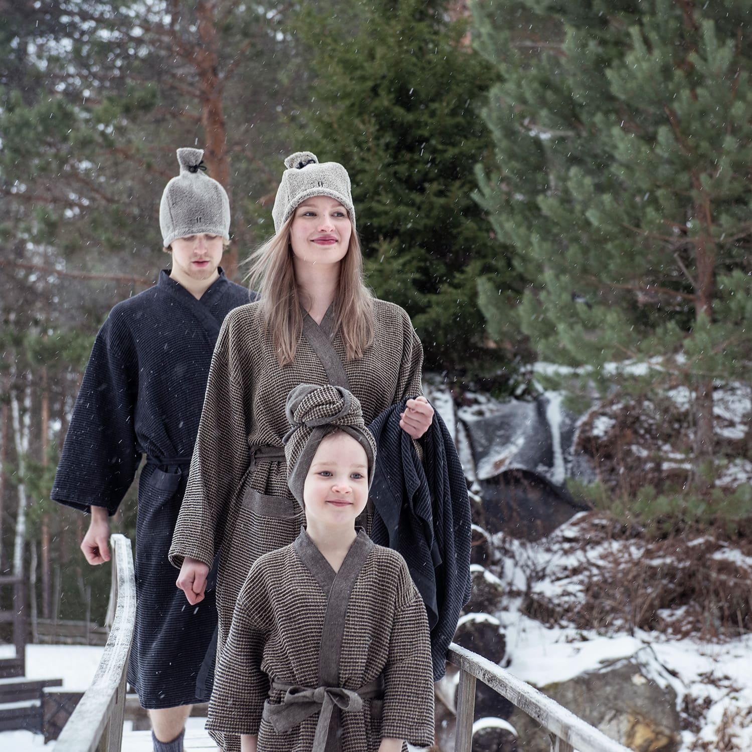 Hommikumantel RENTO BROWN, S/M. Taaskasutatud puuvillast tehtud hommikumantlil on chambray-kandid ja vöö. Pehme ja kerge puuvillane materjal on naha vastu jahe, imab hästi niiskust ja kuivab kiiresti. Materjal: 75 % puuvilla, 25 % polyester. Enne kasutamist pesta. Kahaneb esimesel pesukorral umbes 5%.