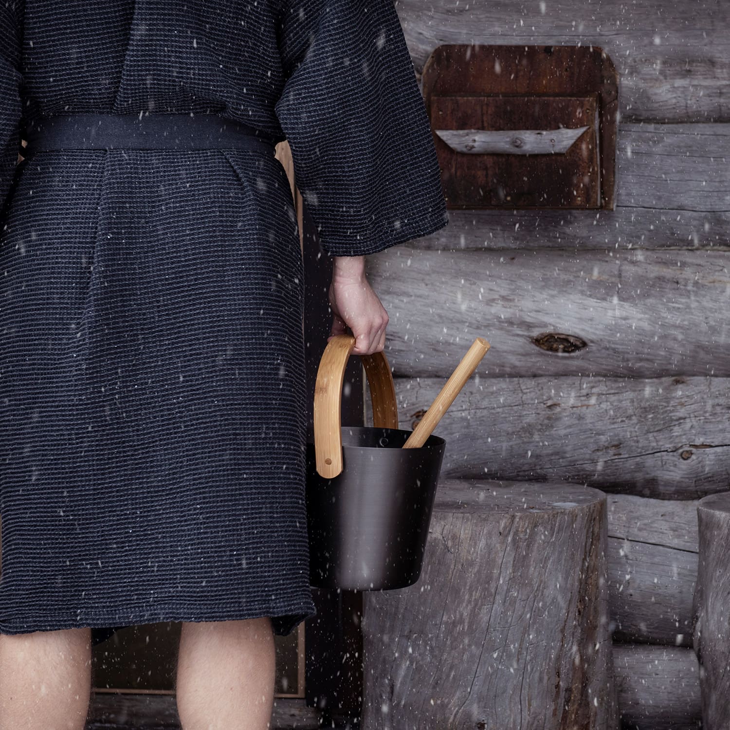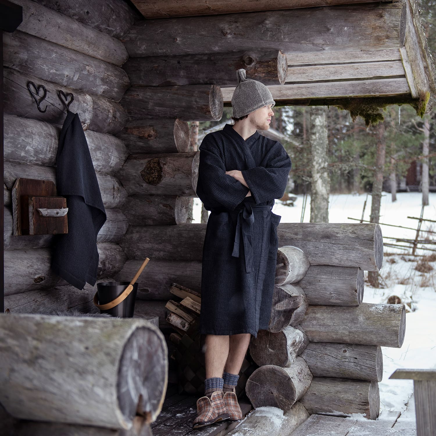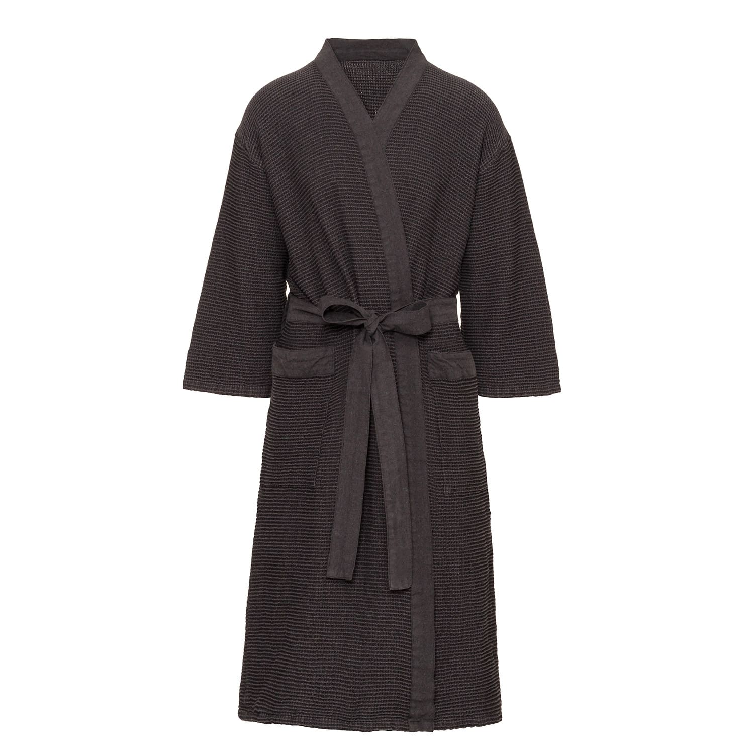 Hommikumantel RENTO GREY, S/M, tumehall. Taaskasutatud puuvillast tehtud rätikul on chambray-kandid ja riputusaas. Pehme ja kerge puuvillane materjal on naha vastu jahe, imab hästi niiskust ja kuivab kiiresti. Materjal: 75 % puuvilla, 25 % polyester. Enne kasutamist pesta. Kahaneb esimesel pesukorral umbes 5%.