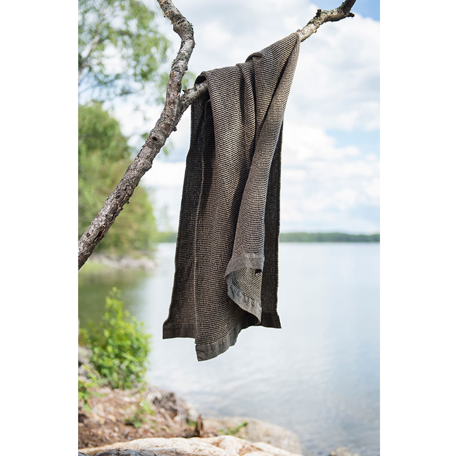Taaskasutatud puuvillast tehtud rätikul on chambray-kandid ja riputusaas. Pehme ja kerge puuvillane materjal on naha vastu jahe, imab hästi niiskust ja kuivab kiiresti. Materjal: 75 % puuvilla, 25 % polyester. Enne kasutamist pesta. Kahaneb esimesel pesukorral umbes 5%.
