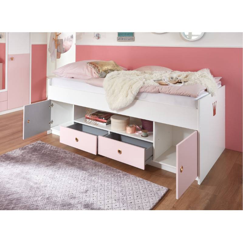 Voodi on valmistatud lamineeritud puitlaastplaadist. Voodile sobib madrats mõõdus 90×200 cm. Voodipõhi ei kuulu komplekti, valige sobiv lippidega põhi mõõdus 90×200 cm. Maksimaalne kandevõime kuni 80kg. Voodi alumises osas on kaks metallsiinidel liikuvat sahtlit. Mõlemal pool on uksed, mille taga mugav lisaruum.