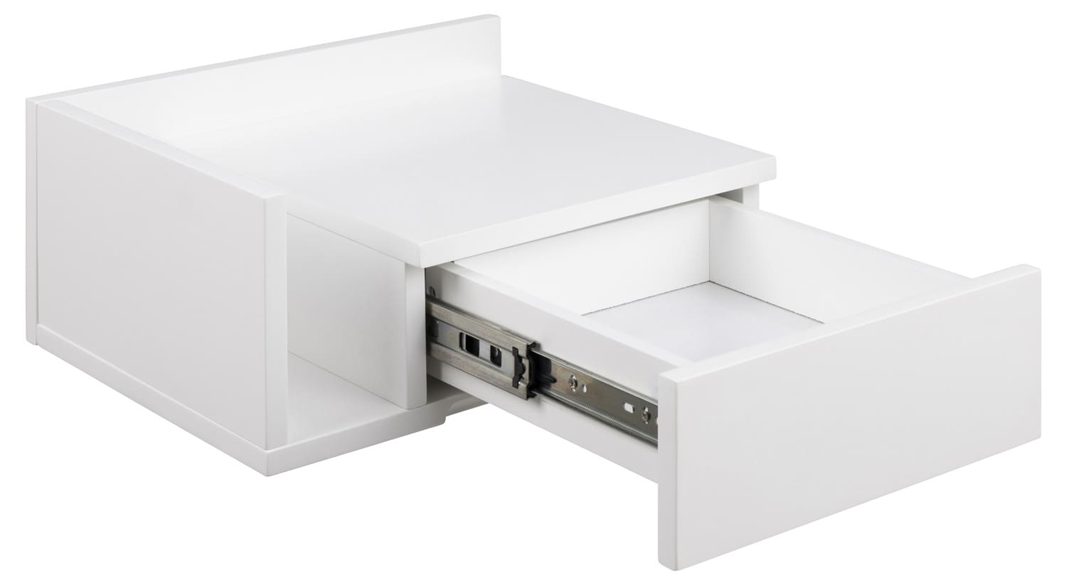 Ideaalne valik igasse magamistuppa, kui soovite minimalistlikku ja elegantset välimust. Puhaste joonte ja valgeks värvitud pinnaga öökapp. Paigaldage see oma voodi kõrvale seinale soovitud kõrgusele. Sahtli kõrval on ruumi ajakirjade jaoks. Kokkupanemisel saate otsustada, kummale poole soovite avatud sektsiooni. Ühes sahtlis on ruumi raamatute, prillide ja kõige muu jaoks, mida vajate. Integreeritud käepide puhta välimuse tagamiseks. HOOLDUS: Värvitud pinnad vajavad vähe hooldust. Kõik plekid tuleb koheselt eemaldada seebivees väänatud lapiga ja pühkida pind kuivaks. Klaasialused ja lauamatid aitavad vältida pinnakahjustusi.