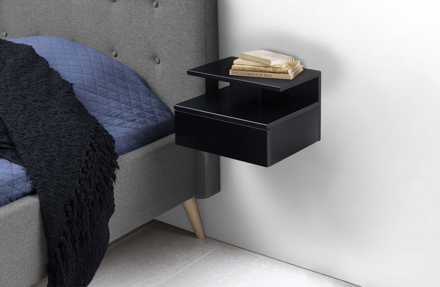 Öökapp ASHLAN 35x32xH22,5cm. Kaasaegne öökapp aitab ruumi säästa. See on ideaalne lahendus ka kõige pisematesse magamistubadesse. Piisavalt suur sahtel võimaldab hoida kõike vajalikku käeulatuses. Puhtad jooned muudavad öökapi sobilikuks igasse interjööri. Seinale kinnitatav, valmistatud MDF-plaadist, sahtlil metallsiinid. HOOLDUS: Üldjuhul vajavad värvitud pinnad vähe hoolt. Kõik plekid tuleb koheselt eemaldada seebiveest kuivaks väänatud lapiga ja pühkida pind kuivaks.