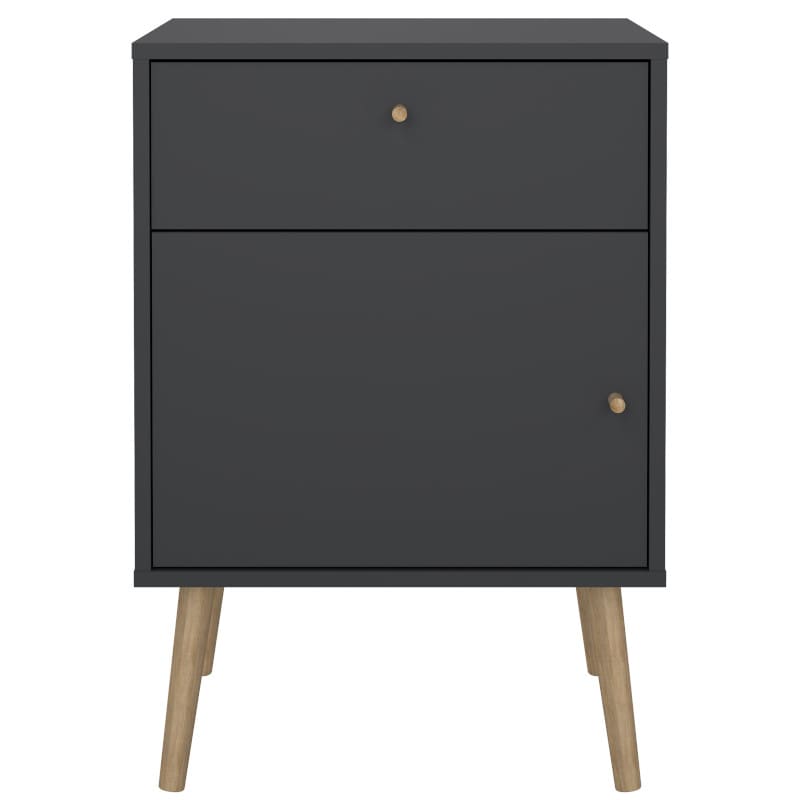 Kogu sarja mööbel on valmistatud mööbliplaadist ning on saadaval erinevates viimistlustes. Aktsendiks mustad käepidemed. Öökapil on kolm metallsiinidel liikuvat sahtlit, jalad mustast plastikust.