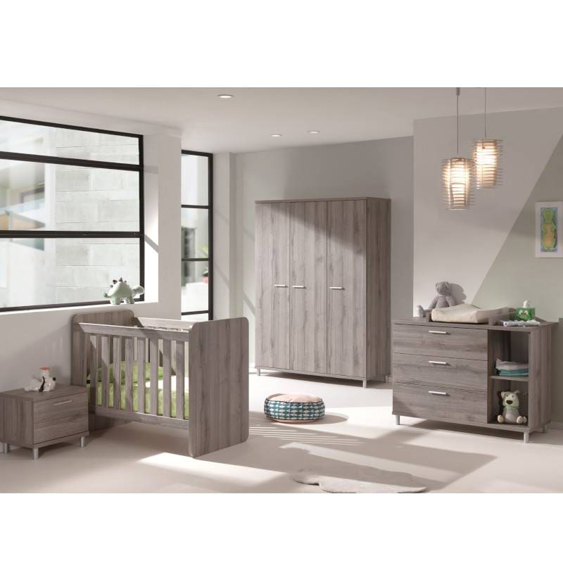 Öökapp on valmistatud mööbliplaadist ning on hallika puidu imitatsiooniga. Üks sahtel liigub metallsiinidel.