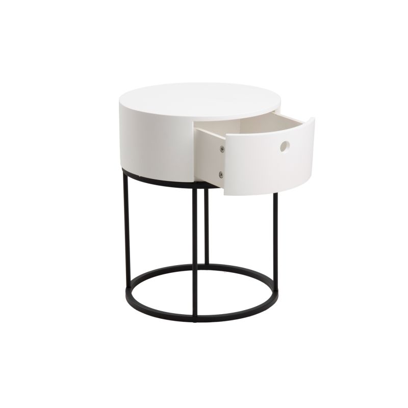 Öökapp, mis on stiilne, kuid pakub ka vajalikke hoiustamistingimusi. Ümar kuju ja minimalistlik vorm muudavad selle ideaalseks igasse magamistuppa. Öökapp ei võta liigselt ruumi ja sellel on sahtel asjade jaoks, mida soovite silme alt eemal hoida. Valgeks värvitud pealispind toetub pulbervärvitud terasest alusele, mis loob kontrastse välimuse. Mõõdud on 40x40xH51cm. HOOLDUS: Üldiselt vajavad värvitud pinnad vähe hooldust. Kõik plekid tuleb koheselt eemaldada seebiveest kuivaks väänatud lapiga. Alus: Kasutage igapäevaseks puhastamiseks seebiveest kuivaks väänatud lappi. Rooste vältimiseks pühkige pind kuivaks. Ärge hõõruge pinda kõvade esemetega.