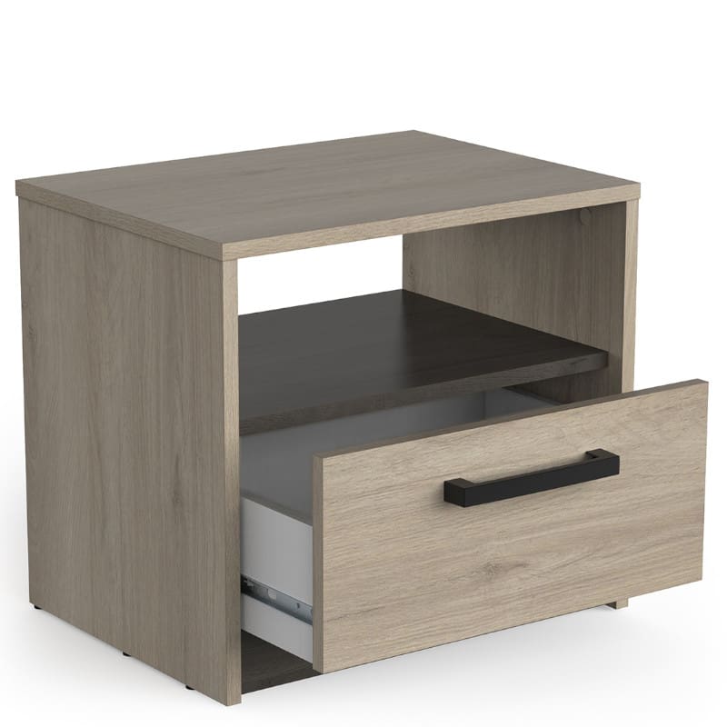 Kogu sarja mööbel on valmistatud mööbliplaadist ning on saadaval erinevates viimistlustes. Öökapp on varustatud ühe sahtliga ning selle kohal asuv avatud osa on ideaalne igapäevaste esemete mugavaks ja kiireks paigutamiseks. Käepidemed lakitud plastikust.