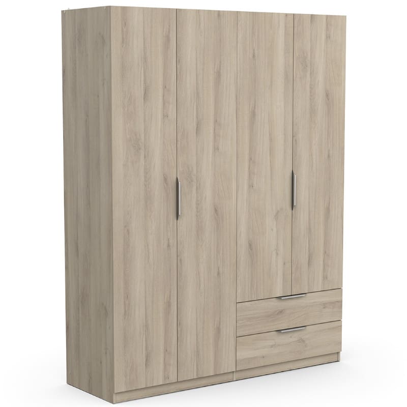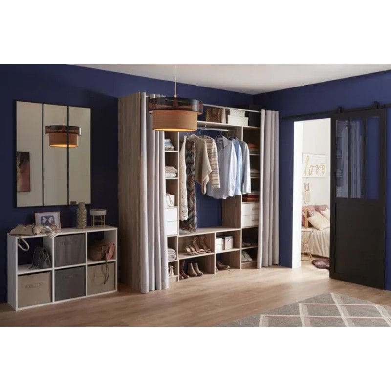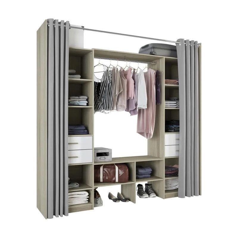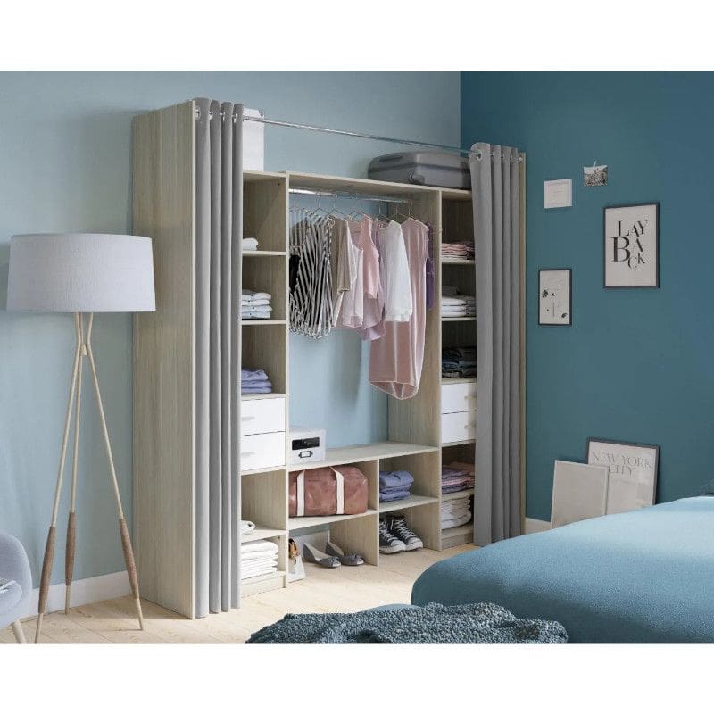 Garderoobil on neli suurt sahtlit, mis kasutavad ära kapi kogusügavust, et optimeerida ruumi nii palju kui võimalik. Kaksteist avatud osa pakuvad mugavat ruumi riietele ja muudele tarvikutele. Sellel on lisaks neli sahtlit ning riidepuutoru. Kaasas on kaks kardinat, need on polüestrist.