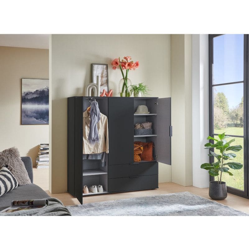 Kogu sarja mööbel on valmistatud mööbliplaadist ning on saadaval erinevates viimistlustes. Aktsendiks mustad käepidemed. Kapil on alumises osas kaks metallsiinidel liikuvat sahtlit. Nende kohal kolm ust, ühe ukse taga on väljatõmmatav riidepuutoru ning kahe teise ukse taga kaks vaheriiulit. Jalad mustast plastikust.
