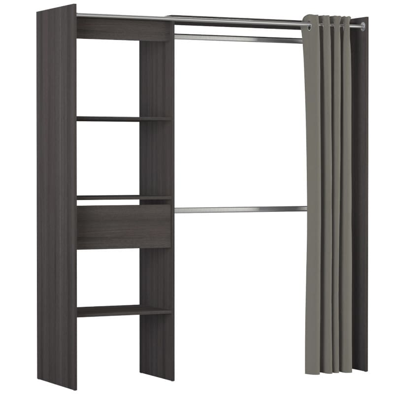 Garderoobil on kaheksa avatud osa, neli sahtlit ning kaks riidepuutoru. See on pikendatav vahemikus 115-190 cm. Pikendamine on ülemise plaadi abil, riidepuutoru tuleb ise soovitud mõõtu lõigata. Komplekti kuulub ka kardin, mis aitab garderoobi sisu vajadusel privaatseks teha.
