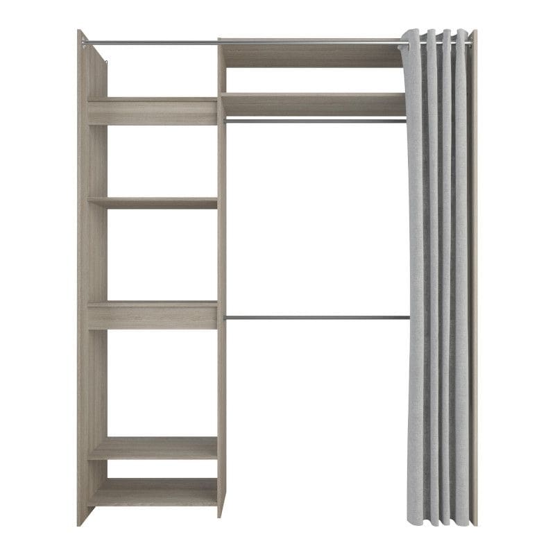 Garderoobisüsteem on pikendatav 113-168 cm. Pikendamine on ülemise plaadi abil, riidepuutoru tuleb ise soovitud mõõtu lõigata. Sellel on viis avatud osa ning kaks riidepuutoru. Komplekti kuulub ka kardin, mis aitab garderoobi sisu vajadusel privaatseks teha.