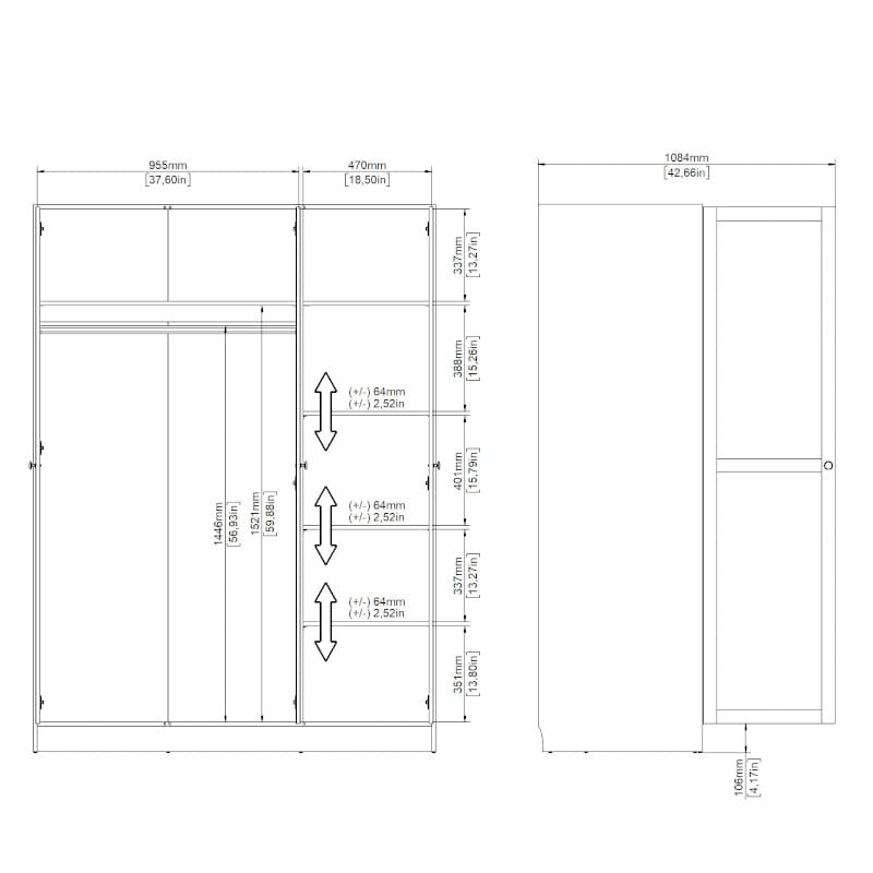 Kogu sarja mööbel on mööbliplaadist ning kahes viimistluses- sametine valge ning tasakaalukas ja puidune hickory. Riidekapp on jaotatud kaheks osaks, paremal on neli vaheriiulit, kolm neist reguleeritava kõrgusega. Vasakul üks vaheriiul ning riidepuutoru.