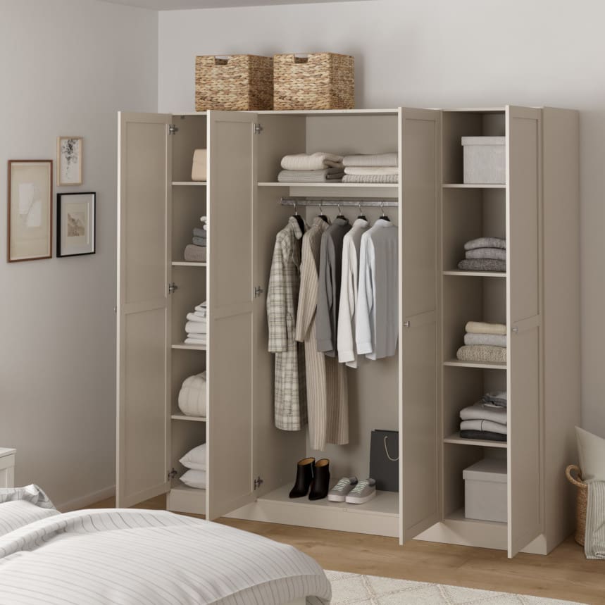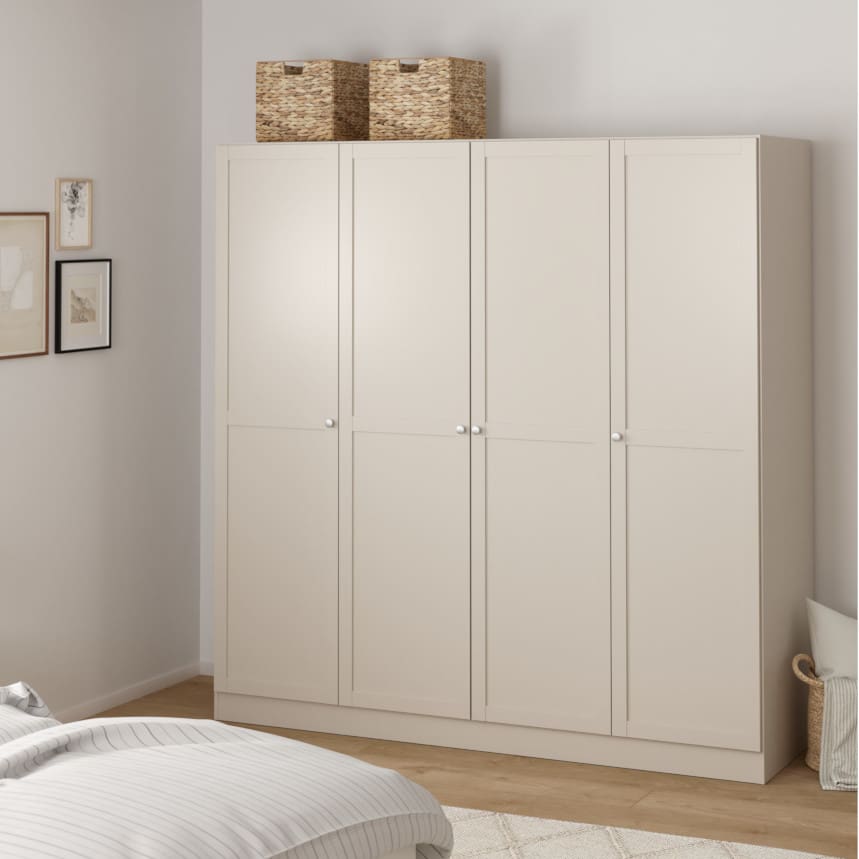 Kogu sarja mööbel on mööbliplaadist ning kolmes viimistluses- sametine valge, tasakaalukas ja puidune hickory ja pehme kašmiir. Riidekapp on jaotatud kolmeks osaks, mõlemal pool ääres on neli vaheriiulit, kolm neist reguleeritava kõrgusega. Keskmiste uste taga üks vaheriiul ning riidepuutoru.