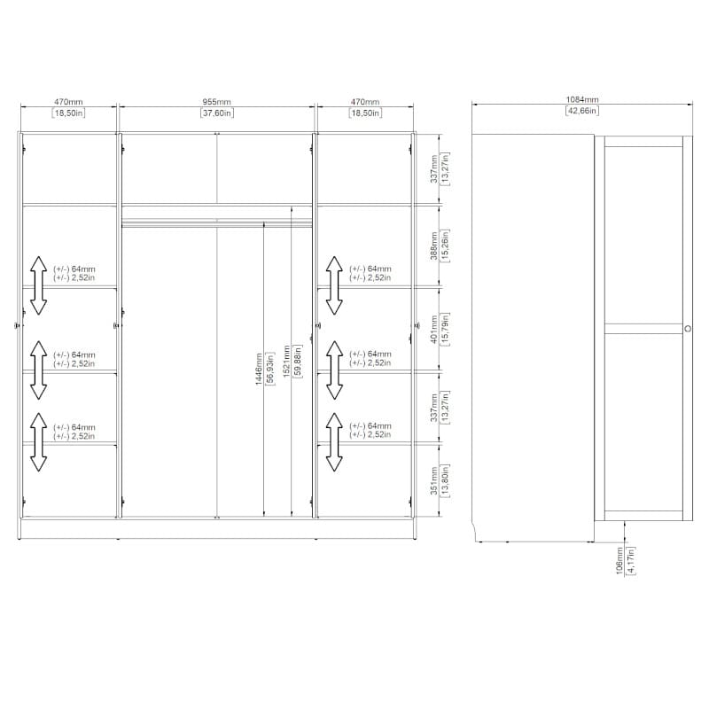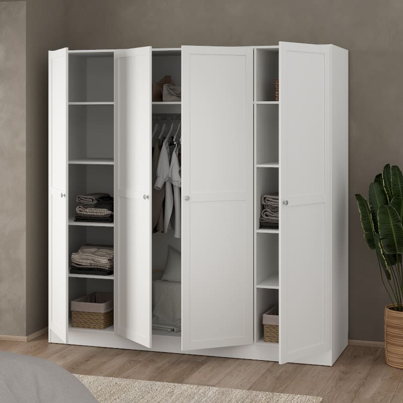 Kogu sarja mööbel on mööbliplaadist ning kahes viimistluses- sametine valge ning tasakaalukas ja puidune hickory. Riidekapp on jaotatud kolmeks osaks, mõlemal pool ääres on neli vaheriiulit, kolm neist reguleeritava kõrgusega. Keskmiste uste taga üks vaheriiul ning riidepuutoru.