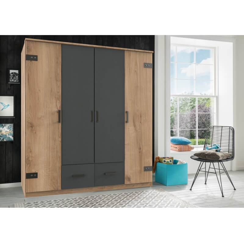 Riidekapp on valmistatud vastupidavast mööbliplaadist ning viimistletud tammeplangu imitatsiooniga. Riidekapil on neli ust ning kaks sahtlit. Kapi mõlema äärmise ukse taga on ülemises osas üks vaheriiul ning üks riidepuu toru. Kapi kahe keskmise ukse taga on kaks vaheriiulit. Väiksemate asjade hoiustamiseks on kapil kaks sahtlit alumises osas.